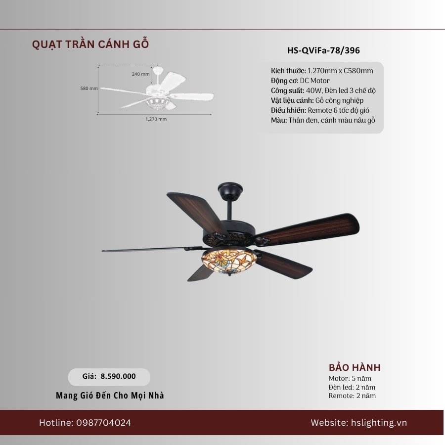 Quạt trần 5 cánh gỗ HS-QViFa-7...