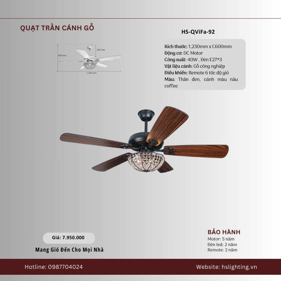 Quạt trần 5 cánh gỗ HS-QViFa-9...