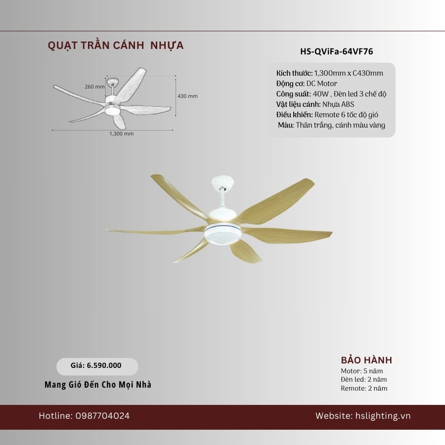 Quạt trần 6 cánh nhựa HS-QViFa...